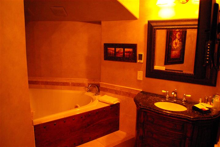 All of our rooms and suites offer more of a romantic getaway than most B&B;’s or hotels out there for less! Our guest rooms offer flat screen TV’s with DVD player and surround sound, bed massagers, mini fridge, coffee maker, zoned heat/AC, phone with private voicemail, WiFi, Hundreds of DVD’s to borrow and bags of popcorn, bath salts, fireplace, Jacuzzi tub, travertine stone bath, and more. Guest rooms are approximately 240 square feet. The suites offer the same amenities but everything is a little bigger. Big southern views, bigger TV’s, Bigger Jacuzzi tubs or private hot tub, bigger sitting areas. If you think a suite is a little out of your price range, we recommend staying in and ordering a pizza and bringing some wine to offset the cost of going out to dinner. This way you can have more time to enjoy the amenities Arrowhead has to offer and really relax and not have to worry about driving anywhere. Get settled in and just relax! Suites are 300­470 square feet.