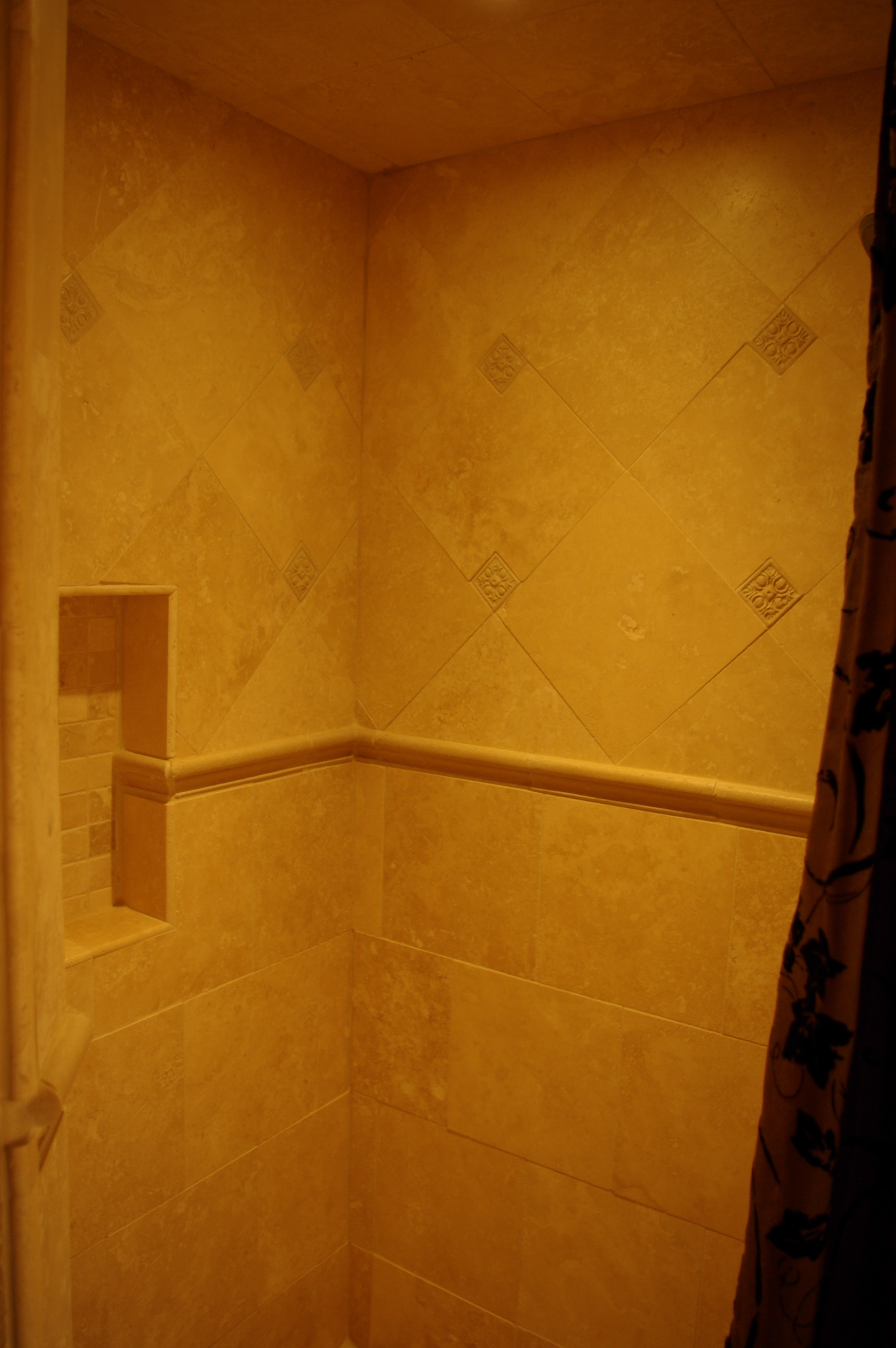 • Couple steps down to a private bathroom, all travertine stone