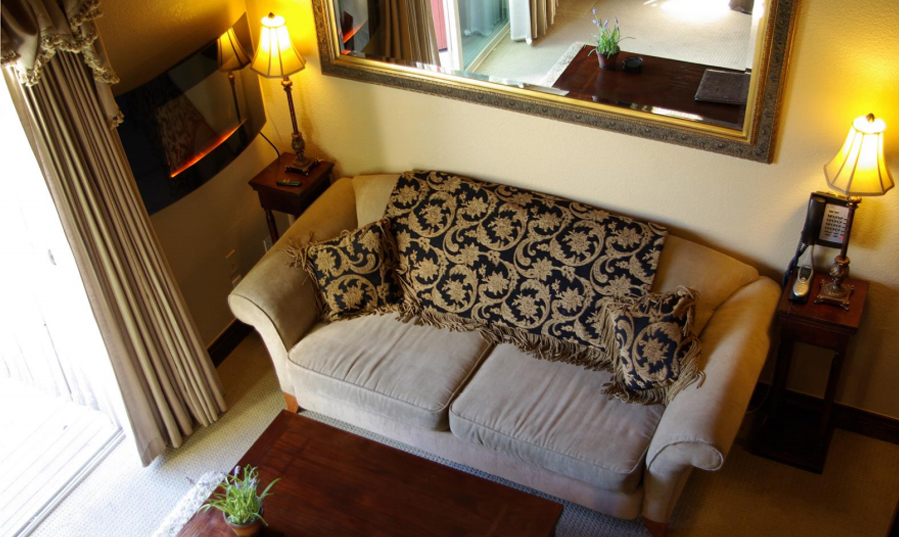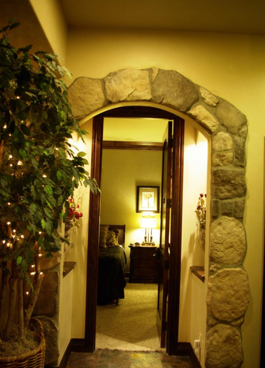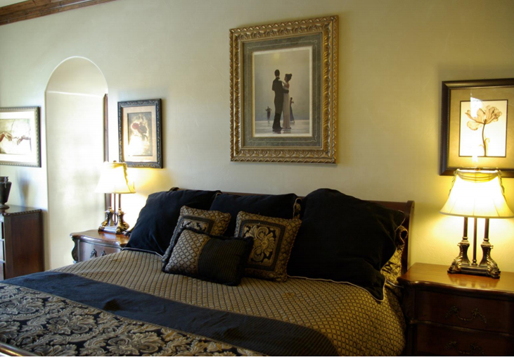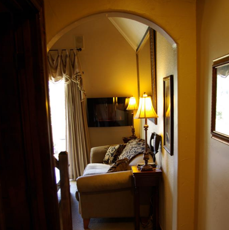 All of our rooms and suites offer more of a romantic getaway than most B&B;’s or hotels out there for less! Our guest rooms offer flat screen TV’s with DVD player and surround sound, bed massagers, mini fridge, coffee maker, zoned heat/AC, phone with private voicemail, WiFi, Hundreds of DVD’s to borrow and bags of popcorn, bath salts, fireplace, Jacuzzi tub, travertine stone bath, and more. Guest rooms are approximately 240 square feet. The suites offer the same amenities but everything is a little bigger. Big southern views, bigger TV’s, Bigger Jacuzzi tubs or private hot tub, bigger sitting areas. If you think a suite is a little out of your price range, we recommend staying in and ordering a pizza and bringing some wine to offset the cost of going out to dinner. This way you can have more time to enjoy the amenities Arrowhead has to offer and really relax and not have to worry about driving anywhere. Get settled in and just relax! Suites are 300­470 square feet.