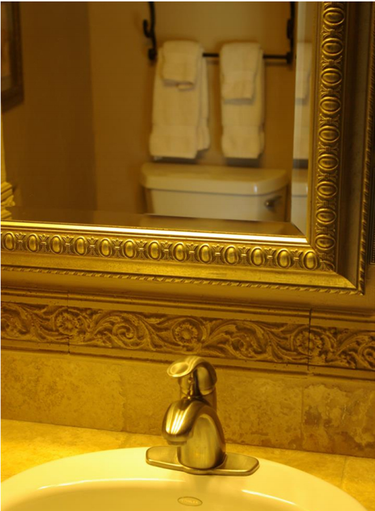 Evergreen's bath has nice decorations.